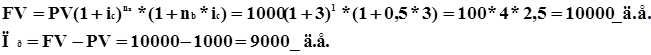 Если процент начисляется на исходную сумму, то ставка процента называется простая . Тогда к концу срока будущая стоимость вклада будет определяться по формуле:
