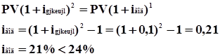 Пример : что лучше – положить деньги в банк А, начисляющий 24% годовых или в банк Б, начисляющий 10% годовых каждые полгода по схеме сложного процента.