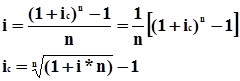 Если проценты начисляются один раз в год, то величина (1+i) показывает, во сколько раз возросла начальная сумма за один год. Годовая процентная ставка i называется эффективной . Однако проценты могут начисляться несколько раз в году. В этом случае указывают номинальную годовую процентную ставку (j), и дополнительно указывают, сколько раз в году происходит начисление процентов (m – число начислений процентов в году).