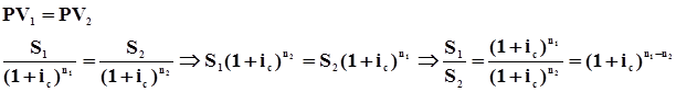 Б) Наращение. Условие эквивалентности: FV1 =FV2