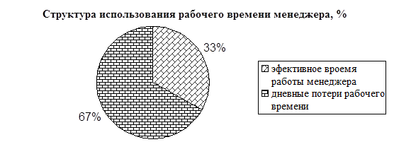 2. Студенты анализируют итоги таблицы 3 и 4, на основе чего рассчитывают и представляют графически структуру использования рабочего времени менеджера (см. рис.2).