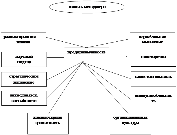В условиях рынка нашим управляющим должны быть присущи такие качества как предприимчивость, самостоятельность, высокая квалификация, способность находить нестандартные решения. В обобщенном виде качества, необходимые менеджеру (модель менеджера) отражены на рисунке 3 (12 ). Реализация этих качеств объективно требует хорошей экономической подготовки и глубоких знаний в области научного управления. Этими проблемами и занимается менеджмент.