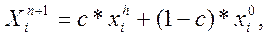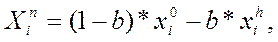 8. Если h – номер отбрасываемой вершины совпадает с результатом (p = h), полученным на предыдущем шаге, то производят сжатие симплекса с помощью 14, в противном случае, если р≠h, точка xh заменяется новой точкой по формуле: