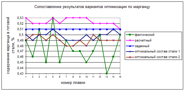 Рисунок 6 – Сопоставление результатов вариантов оптимизации по марганцу