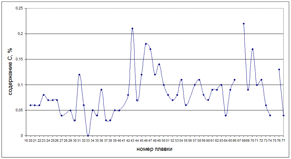 Рисунок 5.1 - Последовательность изменения содержания углерода С, %, в экспресс-анализе стали в зависимости от номера плавки