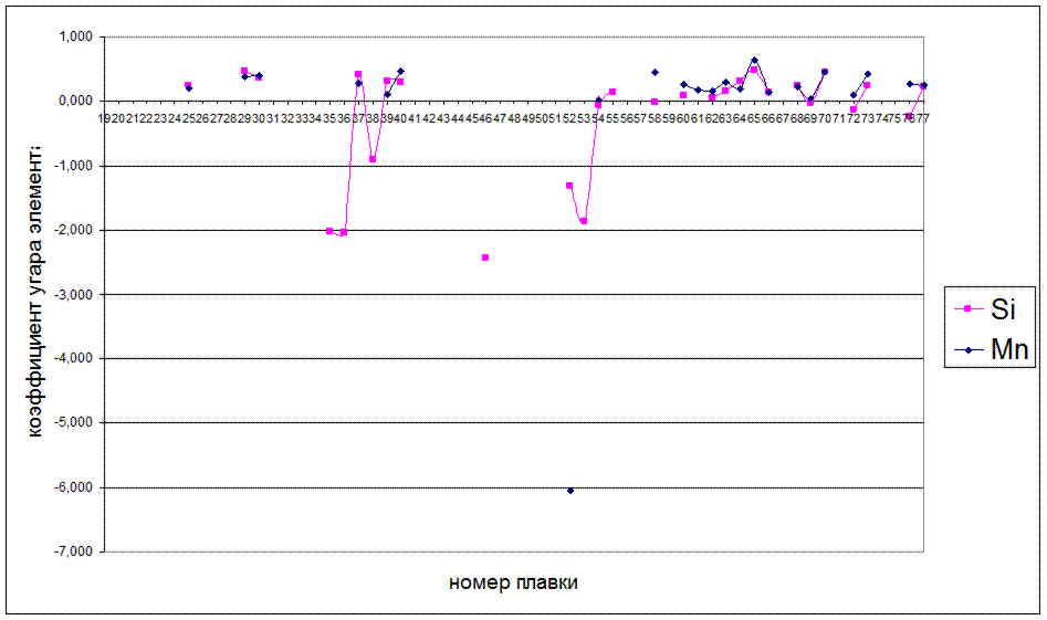 Рисунок 5.9 - Последовательность изменения коэффициента угара элемента в зависимости от номера плавки
