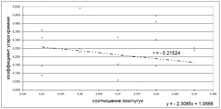 Рисунок 5.24 - Зависимость коэффициента угара кремния от соотношения лом/чугун