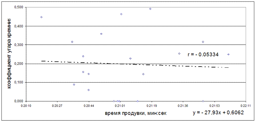 Рисунок 5.16 - Зависимость коэффициента угара кремния от времени додувки, мин:сек
