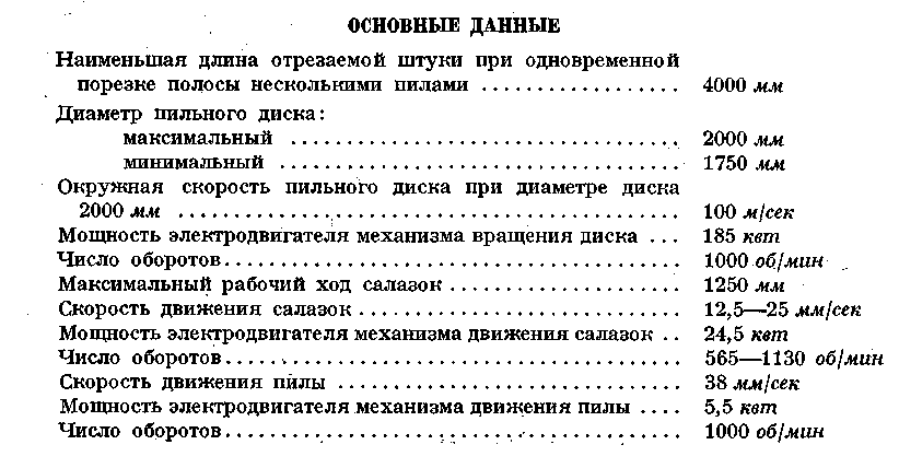 температуре 750° С, круглой заготовки диаметром от 80 до 300 мм и квадратной заготовки от 130 X 130 мм и 240 X 240 мм при наименьшей температуре 900° С. Салазковая пила состоит из механизмов вращения диска, движения салазок и механизма движения пилы. Механизм вращения диска состоит из пильного диска с устройством для его крепления, двух подшипников, в каждом из которых установлено по два конических роликовых подшипника, зубчатой муфты и электродвигателя. Механизм вращения устанавливается в головной части пилы. Пильный диск охлаждается струей воды, которая также частично сбивает стружку с поверхности зубьев диска. Для более полной очистки боковых поверхностей зубьев пильного диска от стружки в кожухе диска предусмотрены четыре деревянных бруска, расположенных по две штуки на каждой стороне. Электродвигатель механизма вращения диска защищен от действия тепловых лучей со стороны разрезаемой полосы специальным экраном с водяным охлаждением. Механизм движения салазок состоит из салазок с приболченными к ним смежными бронзовыми планками и зубчатой рейки с косым зубом, обеспечивающими наиболее плавную подачу салазок пилы во время резки. На раме пилы установлены вал с реечной шестерней, зубчатая муфта, редуктор и электродвигатель. Механизм движения пилы состоит из рамы, на которой установлены два Червячных редуктора с реечной шестерней на нижнем конце вала, промежуточных валов, четырех зубчатых муфт, редуктора и электродвигателя. Рама устанавливается на плоских направляющих с боковыми зубчатыми рейками, по которым катятся реечные шестерни червячных редукторов и передвигают пилу вдоль фронта рольгангов. Смазка подшпников вала пильного диска — жидкая от специальной установки, расположенной на салазках пилы. Кроме того, корпусы подшипников охлаждаются проточной водой. Смазка трущихся поверхностей у механизмов движения салазок и пилы осуществляется консистентной мазью от центральной ручной станции, расположенной на раме пилы. Количество салазковых пил устанавливается в зависимости от производительности прокатки и схемы расположения оборудования стана. Обычно они устанавливаются по линии потока металла и имеют возможность передвигаться по всему фронту участка пил.