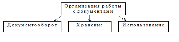 Рис. 2.1.1. Функции документов Обеспечение документирования - это лишь одна составляющая делопроизводства, вторая его составляющая - это организация работы с документами. Организация работы с документами предполагает организацию документооборота учреждения, хранение документов и их использование в текущей деятельности учреждения.