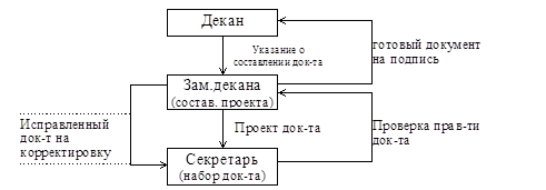 Если документ просто проходит от подразделения к подразделению, то после подписания (6, табл. 3.2.2.) идет передача его в нужное подразделение. Более развернутая схема создания и движения документа (приказа) показана на рис. 3.2.3