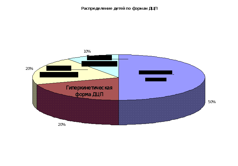 и с параличами, Однако дети с этой формой ДЦП проявляют стремление к общению и обучению. Эта форма вполне благоприятна в отношении обучения и социальной адаптации. Атонически-астатическая форма ДЦП отличается низким тонусом мышц, в отличие от других форм с высоким тонусом. Для этой формы характерно наличие парезов, атаксии и тремора. У 60% - 75% детей наблюдаются речевые расстройства в форме мозжечковой дизартрии. Довольно часто при этой форме наблюдается недоразвитие психики. Гемипаретическая форма. При этой форме двигательные расстройства выражены в меньшей степени, чем при других формах ДЦП. Из-за трофических расстройств у детей отмечается замедление роста костей, а отсюда - укорочение длины паретичной конечности. При этом тяжелее поражаются руки - правая или левая. Эта категория больных ДЦП, как правило, лучше, чем при других формах, общается, социально ориентируется и приучается к труду, но нуждается в коррекции нарушений таких корковых функций, как счет, письмо, пространственное восприятие. Одной из особенностей, характеризующих детский церебральный паралич, является нарушение моторики рук. При некоторых формах заболевания в течение многих лет сохраняются тонические рефлексы периода новорожденности, которые препятствуют развитию двигательной сферы (Семенова К. А., Махмудова Н. М, 1979). Нарушение центрального отдела двигательного анализатора приводит к сложным и стойким расстройствам моторики рук, которые характеризуются не только паретичностью, нарушением тонуса мышц, наличием насильственных движений - гиперкинезов, но и неправильной установкой конечностей и контрактурами суставов. Нарушения ряда корковых функций обуславливают наличие атаксий и дизметрий, что проявляется в виде неточности движений рук. Все эти двигательные расстройства с возрастом имеют тенденцию к усилению. Особенно отчетливо они проявляются при выполнении произвольных движений, что препятствует правильному формированию и фиксированию в памяти схемы этих движений. Для детского церебрального паралича характерно нарушение и высших кинестетических функций, (т. е. - нарушение мышечно-суставного чувства), определяющих в значительной степени не только тонус мышц, но и развитие произвольных движений (К. А. Семенова 1999). У больных при сохранности правильного восприятия отдельных движений нет возможности синтезировать эти движения в единое целое. Дети, больные двойной гемиплегией не узнают формы пассивного движения пальца по геометрическим фигурам или кинестетическое восприятие у них извращено, т. е., если с пассивным проведением пальцем по треугольнику одновременно показать ребенку круг того же размера, то он ощутит движение пальца «по кругу». У детей, страдающих гиперкинетичекой формой ДЦП, кинестетическое чувство иногда исчезает до полной потери после непроизвольных движений. При атонически-астатической форме патологии кинестетического восприятия часто больной не может ощущать прямую линию - как прямую. Она воспринимается, как часть окружности. При гемипарезах кинестетическое восприятие неполное, иногда возникает ложное восприятие формы пассивного движения. Специалисты по проблемам детского церебрального паралича (Э. С. Калижнюк, И. Ю. Левченко, Е. М. Масткжова, К. А. Семенова, М. Б. Эйдинова) считают, что патология кинестетического воспр