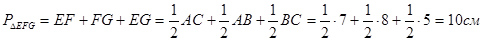 В) Чему равен периметр треугольника? Решение: т.к. EF, EG, FG – средние линии DABС, то