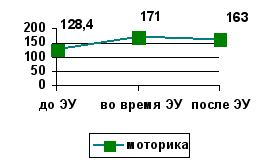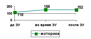 Проанализировав данные мальчиков, видим в первой половине ЭУ отрицательную тенденцию по интенсивности и продуктивности и положительную тенденцию по точности и моторике. Во второй половине ЭУ положительная тенденция по всем показателям. Отдельно отметим, что для мальчиков при анализе моторики брали левую руку, так как из 5 мальчиков в данном классе у 3 доминирует левая рука.