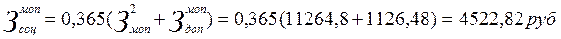 Годовой фонд дополнительной заработной платы производственных рабочих включает оплату очередных отпусков и дополнительных, оплату времени выполнения государственных и общественных обязанностей и другие выплаты, предусмотренные законодательством о труде за недоработанное время. Годовой фонд дополнительной зарплаты определяется в размере 15% к основной заработной плате. Здоп =0,15*З2 сд =0,15*145414,02=21812,1 руб Отчисление на социальное страхование определяется в размере 36,5% к сумме основной и дополнительной заработной плате по формуле: Зсоц =0,365(Зсд +Зд )=0,365(145414,02+21812,1)=61037,54 руб Расчет расценок: Рn =Tn см *t