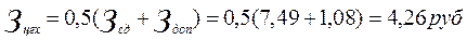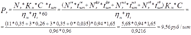 где: Зт - Заработная плата по тарифу за одну деталь (без учета доплат) hпр - Коэффициент учитывающий приработок (премию, оплаты) Ред - Сдельная расценка на операцию m - Количество операций технологического процесса Кмн - Коэффициент учитывающий многостаночное оборудование.
