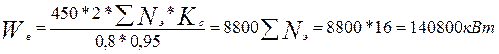 Где: 4150 - годовое число часов работы вентилятора в цехах, работающих в две смены. Кс - коэффициент спроса для вентиляционных установок принимают равным 0.75-0,6 . 0,8 - КПД электродвигателей 0,95 - коэффициент с учетом потерь в сети. Годовой расход силовой электроэнергии