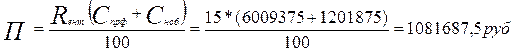Сумма прибыли определяется из заданного уровня рентабельности (15¸20%)