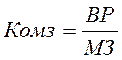 Коефіцієнт показує швидкість обороту усіх мобільних (як матеріальних так і нематеріальних) засобів підприємства. Зростання цього показника характеризується позитивно. Швидкість обороту усіх мобільних засобів АТ „Електромех” незначно уповільнилася. 3. Коефіцієнт оберненості матеріальних оборотних коштів (Комз) обчислюється як відношення виручки від реалізації до середньої за період вартості запасів і затрат по балансу (МЗ) :