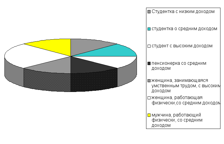 Рисунок 2. Сегментирование рынка На основе результатов сегментирования выбираем группу потребителей, которые будут являться основными клиентами фирмы. Основными клиентами моей фирмы будут являться женщины со средним доходом, студенты, возможно расширение деятельности за счёт пенсионеров и женщин с низкими доходами. Для поддержания спроса на услугу производится стимулирование спроса. Стимулирование влияет на поведение потребителя, превращая его из потенциального в реального покупателя. Есть операции по стимулированию сбыта, которые относятся к жесткому типу - существенное снижение цен, оказание дополнительных услуг при неизменных ценах. Это эффективно, если речь идет о коротком отрезке времени, но дорого обходится. В настоящее время эти операции по стимулированию сбыта носят более мягкий характер (игры, конкурсы покупателей и пр.). Сочетание «жестких» и «мягких» методов стимулирования сбыта побуждает покупателя к совершению немедленной покупки и если стимулирование отвечает ожиданиям покупателя, то оно внушает потребителю симпатию, интерес и преданность с меньшими, по сравнению с рекламой, затратами. Широкий спектр приемов стимулирования сбыта был создан с единственной целью - самым эффективным образом привлечь потребителя к товару и удовлетворить его запросы. Цели стимулирования потребителей сводятся к следующему: - увеличить число покупателей; - увеличить число услуг, в которых нуждается покупатель. Для достижения этих целей используются следующие средства: - ценовое стимулирование (продажа по сниженным ценам, льготные купоны, дающие право на скидку);