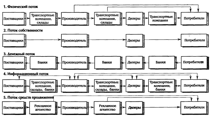 Рис. 4 . Пять различных потоков в канале распределения грузоподъемников. 3.6. Товарная, ассортиментная и сервисная политика как инструменты сбыта продукции Под товарной политикой фирмы понимают разработку привлекательной производственной программы, чтобы обеспечить сбыт продукции на рынке товаров. В центре политики находятся не только существующие, но и новые товары. Обеспечение привлекательности продукции фирма достигает за счет учета поведения потребителей на рынке товаров, меняющейся моды, технического прогресса, достижений фирм-пионеров и запросов потребителей. Поведение потребителей на всерасширяющемся рынке товаров кажется непредсказуемым. Однако детальные наблюдения показывают, что выбор товара покупателем осуществляется в борьбе между единообразием (склонностью к привычному потребительскому поведению) и индивидуальностью (склонностью подчеркнуть свою индивидуальность), между изменением (поиском разнообразия) и инерцией (приверженностью старым унаследованным традициям). Не последнюю роль здесь играет качество товара. Все большее количество товаров становится подверженным моде. Из-за быстрой «смены моды» все больше товаров «психологически» устаревают до их физического износа. Тем самым ускоряется производство заменяющих товаров. Технический прогресс действует в определенном смысле так же, как и мода, товары «морально» устаревают до их физического износа. Однако технически новые продукты не только отличаются от своих предшественников, но и превосходят их. С дальнейшим совершенствованием товара его техническое улучшение все больше изменяется в угоду моде. Фирма, которая выносит на рынок новый товар, может получить перед своими конкурентами значительное преимущество. Она слывет предприятием-пионером, в то время как конкуренты слывут «плагиаторами». Фирма-пионер может получить патент, а конкуренты вынуждены будут либо приобретать лицензию, либо (что дорого) осуществлять «обходные разработки». В то же время обновление продукции связано с определенным риском Конкуренты будут наблюдать за развитием процесса внедрения нового товара, и учиться на ошибках пионера. Пионер должен привлечь внимание к новинке и добиваться к ней интереса рынка. Вся товарная политика фирмы должна быть направлена на предложение таких изделий, которых до сих пор не существовало, которые уже были, но могли бы быть существенно улучшены и которые получили лишь новое оформление. Наиболее частый признак нового товара — новое оформление: вопросы товарного знака, оформление товара и упаковки играют в товарной политике огромнейшую роль. Сегодня никакой продукт не может оставаться ниже качественных норм своего ценового класса, но этого еще недостаточно для гарантии его успеха на рынке. Чтобы окончательно выделиться из массы похожих товаров, дополнительно требуется еще отличительное преимущество этого товара, например чувство дополнительной полезности (консультационные и сервисные услуги). В целом ясно, что фирма-изготовитель имеет многочисленные возможности для профилирования ее продуктов на основе потребительских свойств. Идея совершенствования продукта и создания новых образцов должна быть основой, которые в силу своего опережающего характера в значительной степени должны определять пробивную силу фирмы на рынках Вр