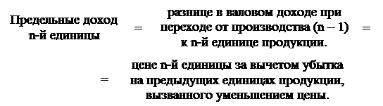 Рисунок 3. Валовые, Постоянные и Переменные издержки. Линия Постоянных издержек FC идет горизонтально согласно определению. Крива переменных издержек на графике находится выше линии FC, Валовые издержки всегда равны их сумме по вертикали TC = FC + VC. Средние издержки. Само собой разумеется, что из трех рассмотренных выше категорий издержек наибольшее значение имеют Валовые издержки. Они позволяют без труда и Переменные и Постоянные издержки. Бухгалтеры иногда считают нужным определить еще один вид издержек. Так, в колонке 6 таблицы 3 представлены Средние издержки. Что бы получить их достаточно просто разделить Валовые издержки на количество продукции. Сначала Средние издержки весьма высоки. Это связано с тем, что выпуск продукции не значителен, Постоянные издержки велики. В том же случае, когда продукция не производится, Средние издержки бесконечно велики. Если выпускается 1 единица продукции, Средние издержки будут равны 320руб. Но по мере роста производства Постоянные издержки составляющие 256руб., приходятся на все большое число единиц продукции. Это и объясняет быстрое падение Средних издержек. Предельные издержки. Предприниматель должен определить при каком объеме производства он получи максимальную прибыль. Поэтому его больше интересует вопрос о Дополнительных издержках, связанных с изменением количества выпускаемой продукции, чем об общих Средних издержках. Данные колонки 5 таблице 3 представляют собой Предельные издержки как разнице в Валовых издержках на каждую дополнительную единицу продукции. Таким образом, что бы получить сумму Предельных издержек при выпуске шести единиц вместо пяти, мы вычитаем валовые издержки производства 5 единиц из Валовых издержек 6 единиц (400руб. –381руб. = 19руб.). c) Возвратимся теперь к вопросу о доходе и спросе. Подобно тому, как мы назвали Дополнительные издержки Предельными издержками, дополнительный доход от продажи дополнительная единица товара мы назовем предельным доходом. Предельные доход может быть получен из колонки 3 таблицы 2. Существует разница между ценой (колонка 2) и предельным доходом (колонка 4 таблица 2). Почему при переходе от выпуска 2 к выпуску 3 единиц продукции предельные доход не равен цене, по которой продается 3 единица, то есть почему он равен не 184руб., а 94руб.? Действительно 3 единица продается за 114руб. Но что бы продать ее, мы должны снизить цену каждой из предыдущих 2 единиц продукции на 10руб. (с 124 до 114руб.). При определении предельного дохода этот убыток на предыдущих единица должен быть учтен в цене третьей единицы. Таким образом, предельные доход равен 114руб. – (2 * 10руб.), или 94руб. Как общее правило предельные доход меньше цены, что видно из следующей основной формулы: