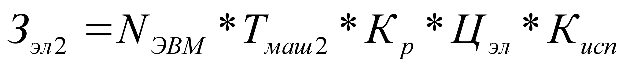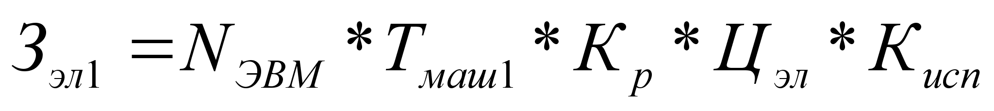 Nэвм – уставная мощность ЭВМ, равна 0.3 кВт; Цэл – стоимость 1 кВт/час электроэнергии, равна 0.63 руб.; Кисп – коэффициент использования энергоустановок по мощности, равен 0.9.