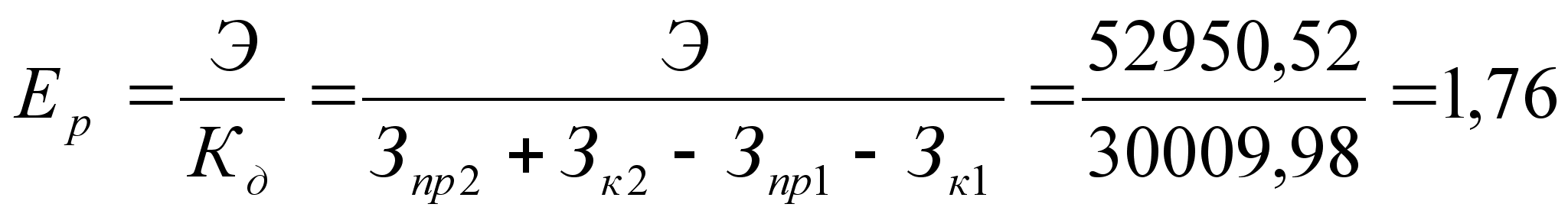 Разница между себестоимостью продукции до и после внедрения задачи – годовая экономия (Э), разница между капитальными затратами до и после автоматизации – дополнительные капвложения (Кд), следовательно,
