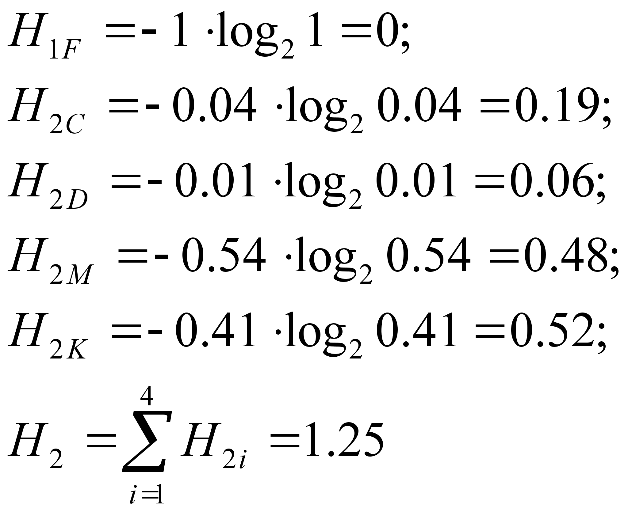 Рассчитаем энтропию информации: