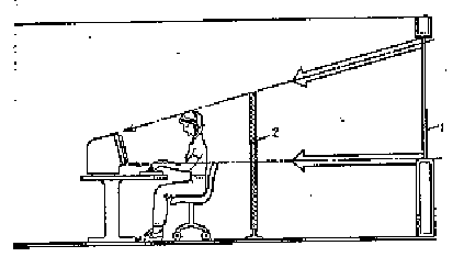 Для исключения засветки экранов дисплеев прямыми световыми потоками светильники общего освещения располагают сбоку от рабочего места, параллельно линии зрения оператора и стене с окнами. Такое размещение светильников позволяет производить их последовательное включение в зависимости от величины естественной освещённости и исключает раздражение глаз чередующимися полосами света и тени, возникающее при поперечном расположении светильников [17]. Расчёт местного светового потока не производится, т.к. в данном случае рекомендуется система общего освещения во избежание отражённой блёсткости от поверхности стола и экрана монитора. Коэффициент пульсации освещённости: