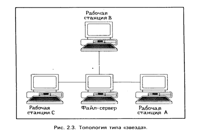 На рис. 2.3 показаны компьютеры, соединенные звездой. В этом случае
