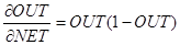 На рис. 3.2 показана активационная функция, обычно используемая для обратного распространения. OUT = 1 / (1 + e –NET ) . (3.1) Как показывает уравнение (3.2), эта функция, называемая сигмоидом, весьма удобна, так как имеет простую производную, что используется при реализации алгоритма обратного распространения.