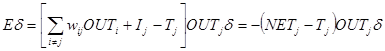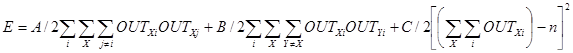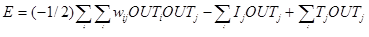 где Е - искусственная энергия сети; wij - вес от выхода нейрона i к входу нейрона j; OUTj - выход нейрона j; Ij - внешний вход нейрона j; Т j - порог нейрона j. Изменение энергии Е, вызванное изменением состояния j -нейрона, есть