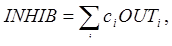 выбраны таким образом, что Выход тормозящего нейрона OUT' затем вычисляется следующим образом: