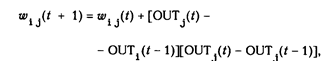 где wij (t) - сила синапса от нейрона i к нейрону j в момент времени t, OUTi (t) - выходной уровень пресинап-тического нейрона в момент времени t, OUT j (t) - выходной уровень постсинаптического нейрона в момент времени t.