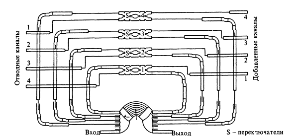 мультиплексирования/демультиплексирования позволяет не только решать задачи оконечных устройств волоконной связи на дальние расстояния (материк - материк, город - город), но и перейти к решению задач внутригородской связи, вплоть до связи типа дом - дом. Кроме того, достоинством ВСМ/Д является возможность их реализации с помощью известных, хорошо разработанных технологических методов микроэлектроники и интегральной оптики, дающих возможность на одном кристалле объединить оптические и электронные схемы, а также обеспечить соединение с ВС. При этом научная и технологическая база для коммерческого использования ВСМ/Д в основном подготовлена. 2.1.1. Принципиальные схемы и основные характеристики ВСМ/Д. В основе ВСМ/Д лежит известный объемный анализатор спектра типа эшелона Майкельсона, представляющий собой фазовую решетку со сравнительно небольшим числом интерферирующих лучей и большой постоянной разностью фаз между соседними лучами. Его волноводное воплощение получило ряд названий (ВСМ/Д, волноводный спектральный анализатор (ВСА), спектральный мультиплексор на основе матрицы сфазированных волноводов (фазар) и др.). По сути, все названия относятся к одному и тому же устройству.