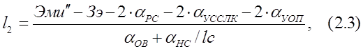 Эми” – энергетический потенциал одноволоконной ВОСП, определяемый соотношениями: 1) Эми”=Эми’ при использовании оптических переключателей (Эми’–энергетический потенциал обычной ВОСП с учётом специального кодирования). 2) Эми”=Эми’-10lg(1+Ршоу/РШ) при использовании ОР с ОУ, где Ршор и Рш – мощности эквивалентного шума на входе оптического приемника и шума ОУ на его выходе, дБ. Затухание сигнала в устройстве оптического переключения определяется соотношениями: 1) aуоп=aп при использовании оптического переключателя, где aп – затухание сигнала в оптическом переключателе; 2) aуоп=aор-Коу при использовании оптического разветвителя с оптическим усилителем, где Коу – коэффициент усиления ОУ, дБ. Длина регенерационного участка l2 для приведённых выше значений параметров аппаратуры и использовании оптических переключателей (aуоп=3.5дБ), согласно формуле (2.3), составляет: