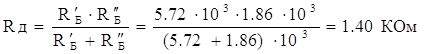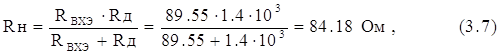 ,где Rн – сопротивление нагрузки усилителя. Сопротивлением нагрузки усилителя является входное сопротивление прямого модулятора и равно параллельному соединению сопротивлений делителя Rд (из двух параллельно соединённых сопротивлений в цепи базы
