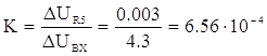 Требуемый от схемы коэффициент усиления равен отношению амплитуды выходного напряжения (напряжение ΔUR5) к амплитуде входного напряжения. Поскольку на вход согласующего усилителя сигнал поступает с преобразователя кода, собранного на микросхемах серии ТТЛ с уровнями логического нуля и единицы соответственно 0.7 и 5 В, то амплитуда входного сигнала составит ΔUвх=5-0.7=4.3 В.