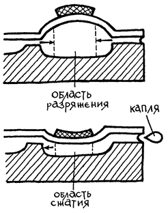 бумагу (для нанесения изображения), либо в специальный приемник, откуда чернила снова попадают в общий резервуар. В рабочую камеру чернила подаются микронасосом, а элементом, задающим их движение, является, как правило, пьезодатчик. Для того чтобы направить струю чернил в определенные места на бумаге (или в приемник), необходимы отклоняющие электроды. Разумеется, что струя чернил должна электризоваться, предварительно пройдя через заряжающие электроды. Описанный выше принцип действия печатающего устройства использует сегодня очень небольшое количество принтеров. Самыми распространенными являются более прогрессивные технологии. Устройства дискретного действия. Итак, большинство современных чернильных принтеров используют технологию Drop-on-demand, которая основана на дискретном выпрыскивании капель чернил на бумагу из сопел печатающей головки. В настоящее время на практике для нанесения чернил на бумагу наиболее широко используется два дискретных метода. Различают так называемые Bubble-Jet-nphhtepbl и принтеры, использующие для управления соплом пье-зозлемент. Надо сказать, что при технической реализации оба этих метода практически эквивалентны, как по затратам, так и по качеству получаемого изображения.