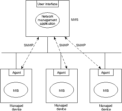 Рисунок 1 - Модель управления сетью Управляемое устройство может быть узлом любого типа, находящимся в какой-нибудь сети: это хосты, служебные устройства связи, принтеры, роутеры, мосты и концентраторы. Так как некоторые из этих систем могут иметь ограниченные способности управления программным обеспечением (например, они могут иметь центральные процессоры с относительно малым быстродействием, или ограниченный объем памяти), программное обеспечение управления должно сделать допущение о наименьшем общем знаменателе. Другими словами, программы управления должны быть построены таким образом, чтобы минимизировать воздействие своей производительности на управляемое устройство. Так как управляемые устройства содержат наименьший общий знаменатель программного обеспечения управления, тяжесть управления ложится на NMS. Поэтому NMS обычно являются компьютерами калибра АРМ проектировщика, которые имеют быстродействующие центральные процессоры, мегапиксельные цветные устройства отображения, значительный объем памяти и достаточный объем диска. В любой управляемой сети может иметься одна или более NMS. NMS прогоняют прикладные программы сетевого управления, которые представляют информацию управления пользователям. Интерфейс пользователя обычно базируется на стандартизированном графическом интерфейсе пользователя (graphical user interface - GUI ). Сообщение между управляемыми устройствами и NMS регулируется протоколом сетевого управления. Стандартный протокол сети Internet, Network Management Framework, предполагает парадигму дистанционной отладки, когда управляемые устройства поддерживают значения ряда переменных и сообщают их по требованию в NMS. Например, управляемое устройство может отслеживать следующие параметры: -число и состояние своих виртуальных цепей; -число определенных видов полученных сообщений о неисправности; -число байтов и пакетов, входящих и исходящих из данного устройства; -максимальная длина очереди на выходе (для роутеров и других устройств объединения сетей); -отправленные и принятые широковещательные сообщения; -отказавшие и вновь появившиеся сетевые интерфейсы. 2 Модель управления сети ISO Международная Организация по Стандартизации (ISO) внесла большой вклад в стандартизацию сетей. Модель управления сети этой организации является основным средством для понимания главных функций систем управления сети. Эта модель состоит из 5 концептуальных областей: 1. Управление эффективностью 2. Управление конфигурацией 3. Управление учетом использования ресурсов 4. Управление неисправностями 5. Управление защитой данных 2.1 Управление эффективностью Цель управления эффективностью - измерение и обеспечение различных аспектов эффективности сети для того, чтобы межсетевая эффективность могла поддерживаться на приемлемом уровне. Примерами переменных эффективности, которые могли бы быть обеспечены, являются пропускная способность сети, время реакции пользователей и коэффициент использования линии. Управление эффективностью включает несколько этапов: 1. Сбор информации об эффективности по тем переменным, которые представляют интерес для администраторов сети. 2. Анализ информации для определения нормальных (базовая строка) уровней. 3. Определение соответствующих порогов эффективности для каждой важной переменной таким образом, что