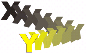 Ч Мал. 1. Ефект видавлювання им далі при створенні ефекту видавлювання, перемістити мишку, тим далі розміститься від центра об’єкта хрестик, який є уявною крапкою сходження ліній видавлювання об’єкта, і тим більш довгим буде видавлюваний об’єкт (в віртуальному просторі). Для зміни типа видавлювання призначений список Тип выдавливания панелі властивостей або аналогічний список вкладки Выдавливание докер-вікна Выдавливание. Для зміни типу видавлювання існує шість варіантів: звуження з віддаленням, звуження з наближенням, розширення з віддаленням, розширення з наближенням, рівномірне віддалення, рівномірне наближення. Перші чотири варіанти являють собою перспективу. Панель властивостей дозволяє маніпулювати кольором видавлювання, глибиною ефекту. Для точної зміни глибини видавлювання використовується поле Глубина панелі властивостей. З мовчазної згоди використовується значення 20. Глибина видавлювання вимірюється в відносних безрозмірних одиницях від 1 до 99, представляє собою долі відстані між площиною об’єкта і крапкою сходження. Глибину видавлювання можна змінювати, використовуючи регулятор екранного керуючого елементу. Режим обертання доступний тільки для видавлених об’єктів в режимі перспективи, в яких крапка сходження прив’язана до об’єкта. Обертати видавлені об’єкти можна трьома способами: за допомогою мишки, використовуючи вкладку Вращение выдавливания докер-вікна Выдавливание, за допомогою екранних елементів керування, і використовуючи поля введення для точного обертання навколо вісей х, у, z. Маніпуляції з кольором. Існує три режими зміни кольору видавлених поверхонь. З мовчазної згоди в якості кольору заливки для поверхонь видавлювання, використовується колір заливки вихідного об’єкта. Якщо змінити заливку вихідного об’єкта, то заливка динамічно пов’язаних з ним поверхонь ефекту видавлювання зміниться автоматично. Використовуючи вкладку Освещение выдавливания докер-вікна Выдавливание, можна змінити освітленість видавленого об’єкта, зробивши ефект більш реалістичним. До ефекту видавлювання можна додавати джерела світла (до 3-х штук), мишкою змінювати стан джерела в області попереднього перегляду, змінювати інтенсивність освітлення. Створення переходів За допомогою інструмента Интерактивное перетекание або докер-вікно Смешанное можна створити ефект плавного переходу між двома вихідними об’єктами – початковим об’єктом і кінцевим об’єктом. Між цими об’єктами створюється ряд проміжних об’єктів, які поступово змінюють форму від початкового об’єкта до кінцевого. Число об’єктів визначається параметром ефекту, який називається числом кроків ефекту. В якості вихідних об’єктів не можуть бути вибрані наступні об’єкти: фрагменти простого тексту, ефекти видавлювання, узорчаті і текстурні заливки, і растрові об’єкти. В якості вихідних об’єктів для прикладу створення ефекту переходу вибрані дві букви художнього тексту. Вибирається інструмент Интерактивное перетекание. Необхідно слідкувати за зображенням вказівника мишки, якщо ним не торкатися початкового об’єкта переходу, він буде містити знак заборони виконання переходу, але, якщо ним торкнутися об’єкта, вказівник змінить свій вигляд на стрілку, яка вказує перехід. Натиснути ліву кнопку мишки на першій букві, яка буде початко