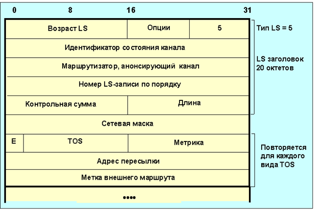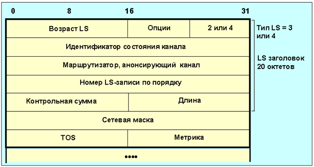 Рисунок 4.10 Формат OSPF-сообщений о маршрутах