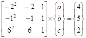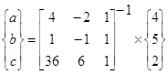 1.6.2 Ввод текстаВводим текст, оформленный стилем "Надпись", в надписи, затем изменяем параметры шрифта (размер и начертание). 1.6.3 Сохранение шаблонаСозданный шаблон сохраняем в файл пользователя под именем "Пояснительная записка". 2 Задача № 1Даны координаты трех точек А(-2;4), B(-1;5), C(6;2), Построить квадратную параболу, проходящую через все эти точки. 2.1 Теоретический подход к решению задачиУравнение квадратной параболы имеет вид y=ax2 +bx+c (1) Для определения неизвестных коэффициентов (a, b, c) запишем систему уравнений, подставив известные значения абсцисс и ординат точек A, B, C.