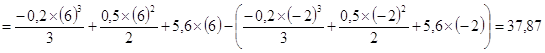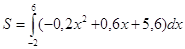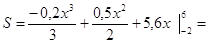 Рис. 2 График функции, проходящей через заданные точки А (-2;4), B(-1;5), C(6;2), с нанесенными маркерами и соответствующий формуле (9). 3 Задача № 2Используя формулы численного интегрирования (прямоугольников "с избытком" и "с недостатком", трапеций, парабол), определить площадь фигуры, ограниченной построенной кривой, осью абсцисс 0Х, и прямыми, проходящими через заданные крайние точки и перпендикулярными оси 0Х. На основании проведенного анализа результатов сделать вывод о предпочтительности применения одной из формул в данном конкретном случае. 3.1 Теоретический подход к решению задачиДля решения поставленной задачи необходимо провести интегрирование полученной функции (9) в пределах отрезка [-2;6], ограниченного заданными крайними точками A и C.