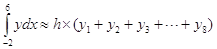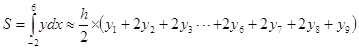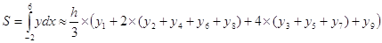 (12) Точная площадь фигуры S = 37,87 ед2 Для определения площади фигуры с помощью формул численного интегрирования в пределах отрезка (-2; 6) проведем по семи точкам.