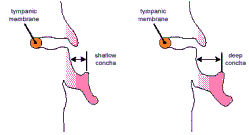 Слева неглубокая ушная раковина, справа – глубокая