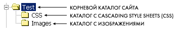 Вставка ссылки на электронный адрес. Тем кто немного знает HTML уже известно, что для вставки подобной ссылки достаточно написать: <A HREF="mailto:dab512@mail.ru">e-mail</A>.Вставка текущей даты - очень удобная вещь. Достаточно указать формат даты, времени и, если необходимо, указать пункт Update Automatically on Save (автоматически обновлять при сохранении). 5.3. Структура сайта Прежде чем вообще браться за изготовление сайта, нужно четко представить себе его структуру, размещение основных материалов по каталогам. Чтобы затем просто не запутаться в этих материалах. В нашем случае структура будет предельно проста: