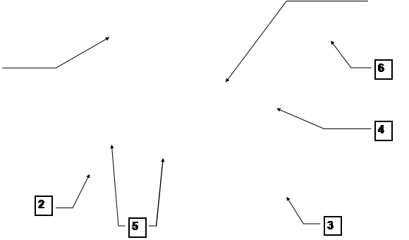 Упражнение 10 Использование графики 1. Наберите заголовок: "Организационная схема типичной фирмы." – шрифт Arial Cyr, размер 16, полужирный, подчеркнутый, выравнивание по центру. 2. Используя кнопку "Надпись " нарисуйте под заголовком прямоугольный элемент (на схеме помечено –1 ), и скопируйте его в положение 2, 3, 4. 3. Введите в рамки соответствующий текст: шрифт полужирный, курсивный, 14, выравнивание по центру. Измените размер рамок там, где это необходимо. 4. Выделите эти четыре рамки с помощью кнопки Выбор объектов и задайте для них горизонтальное выравнивание по центру с помощью соответствующей кнопки. 5. Нарисуйте (или скопируйте) два объекта, помеченные цифрой 5 и, выбрав в меню Формат Обрамление и Заливка , оформите нижний объект. 6. Выделив объекты 5 (кнопкой Выбор объектов) , скопируйте их в положение, указанное на схеме цифрой 6 и, не снимая выделения , выполните для них Горизонтальное отражение 7. Соедините элементы схемы отрезками прямых линий, используя копирование. 8. Введите в схему соответствующий текст и оформите по образцу. Образец схемы: Организационная схема типичной фирмы
