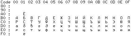 Преимущество данной кодировки в том, что она не имеет разрывов - недостатки в том, что она лексиграфически не упорядочена. Кодировка MS DOS СР866 предложена фирмой Microsoft для MS DOS 6.22. Следует отметить, что эта кодировка немного отличается от кодировки, используемой ранее фирмой Microsoft для MS DOC (CP855) и от альтернативной кодировки, разработанной для персональных компьютеров. Русские буквы в кодовой таблице MS DOS
